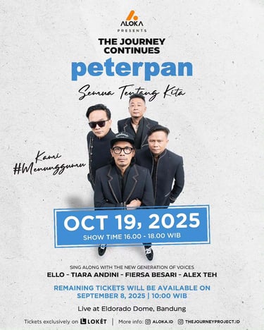 Peterpan—Ariel, Lukman, Reza, Indra, Andika, dan Uki—telah menjadi bagian dari denyut musik Indonesia selama lebih dari dua dekade. Dari panggung kecil di Bandung hingga mencetak sejarah nasional, karya-karya mereka telah melekat dalam kehidupan jutaan orang.